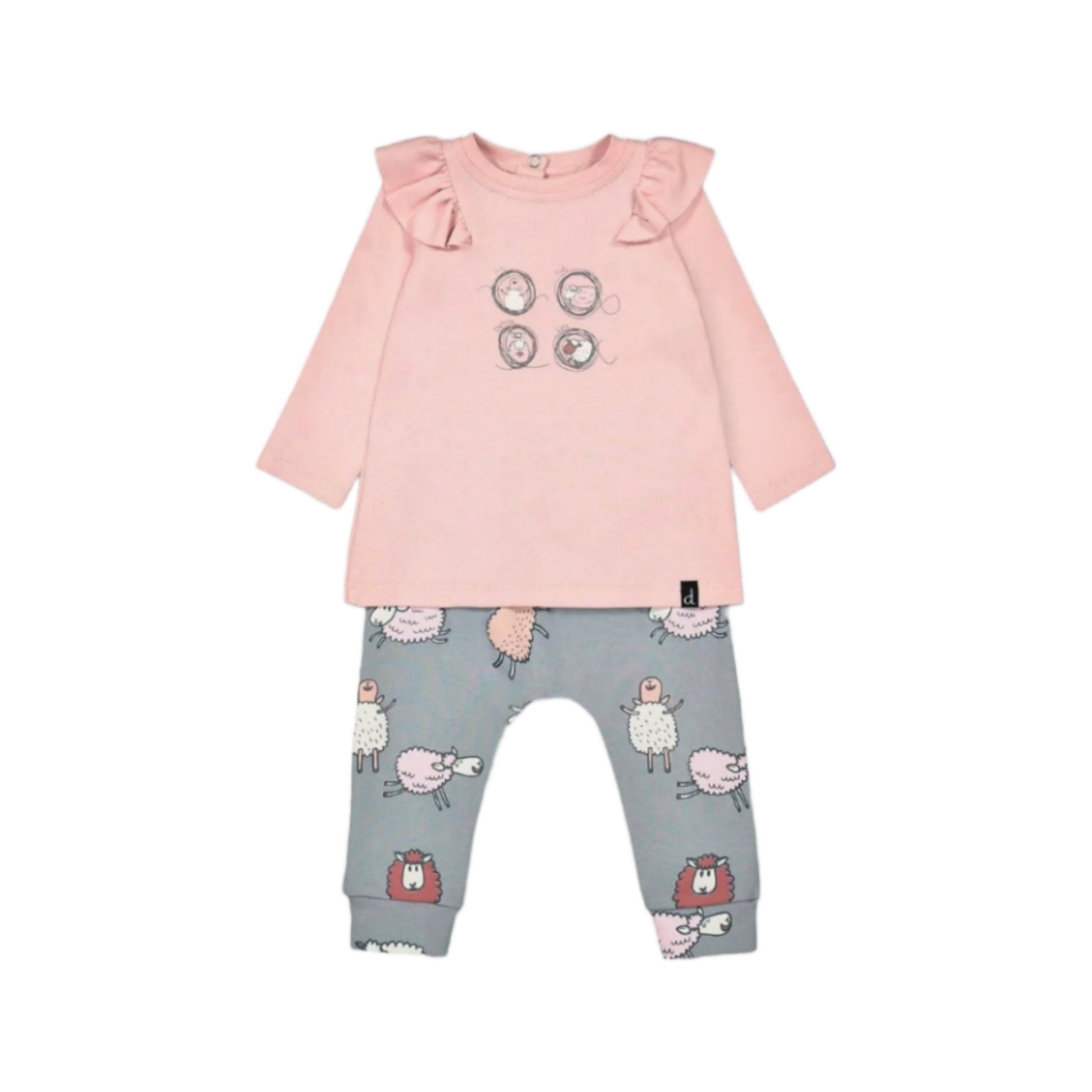 This organic cotton tunic and printed legging set features a long sleeve top with a round neckline, a flounce hem, and two little snaps at the back of the neck. It's paired with leggings in a comfortable stretch fit with an elastic waist.