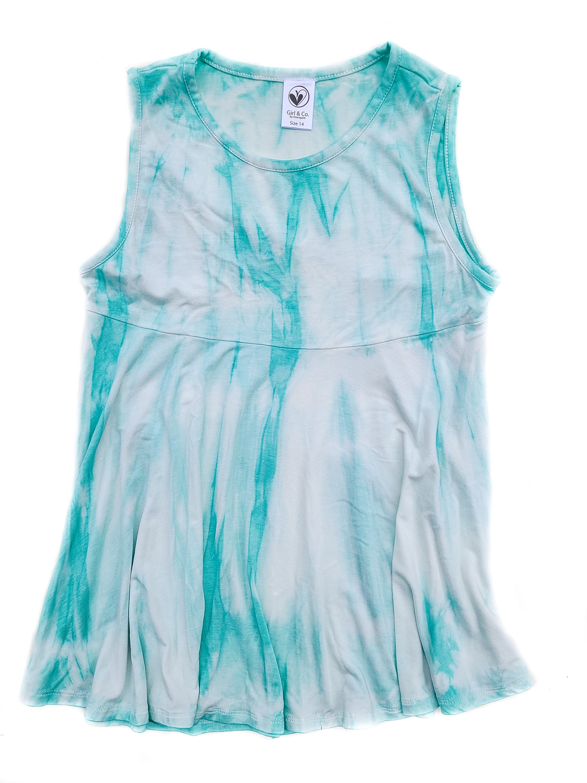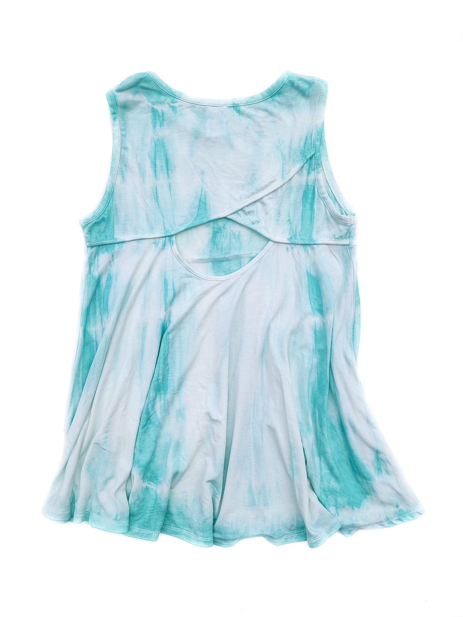 Flared tied dye tank top with a cute cut out back detail.