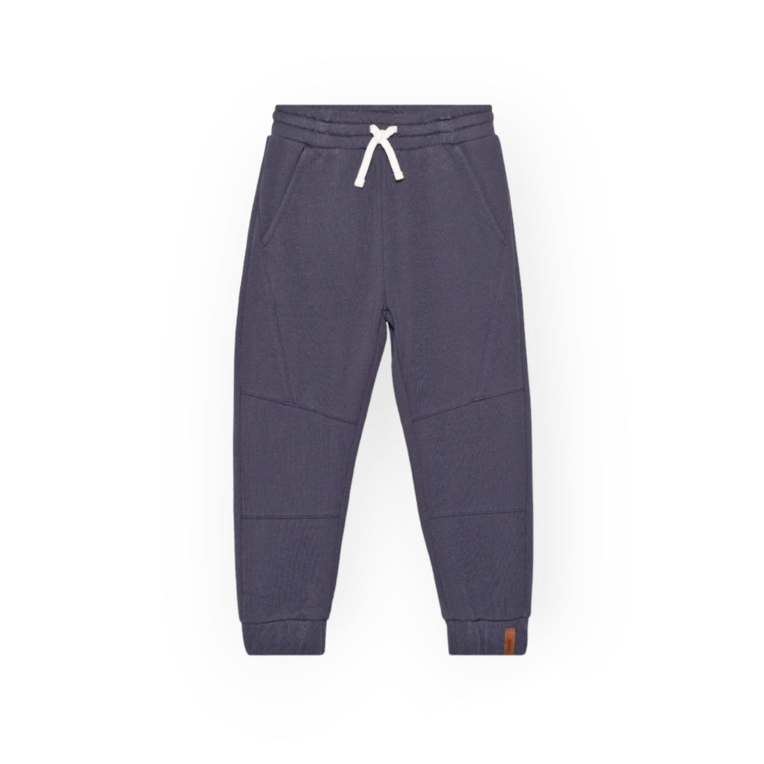 In a soft cotton/poly blend, this pant features a jogger silhouette with a drawstring waistband, seamed details at the hips and knees, and slant front pockets.