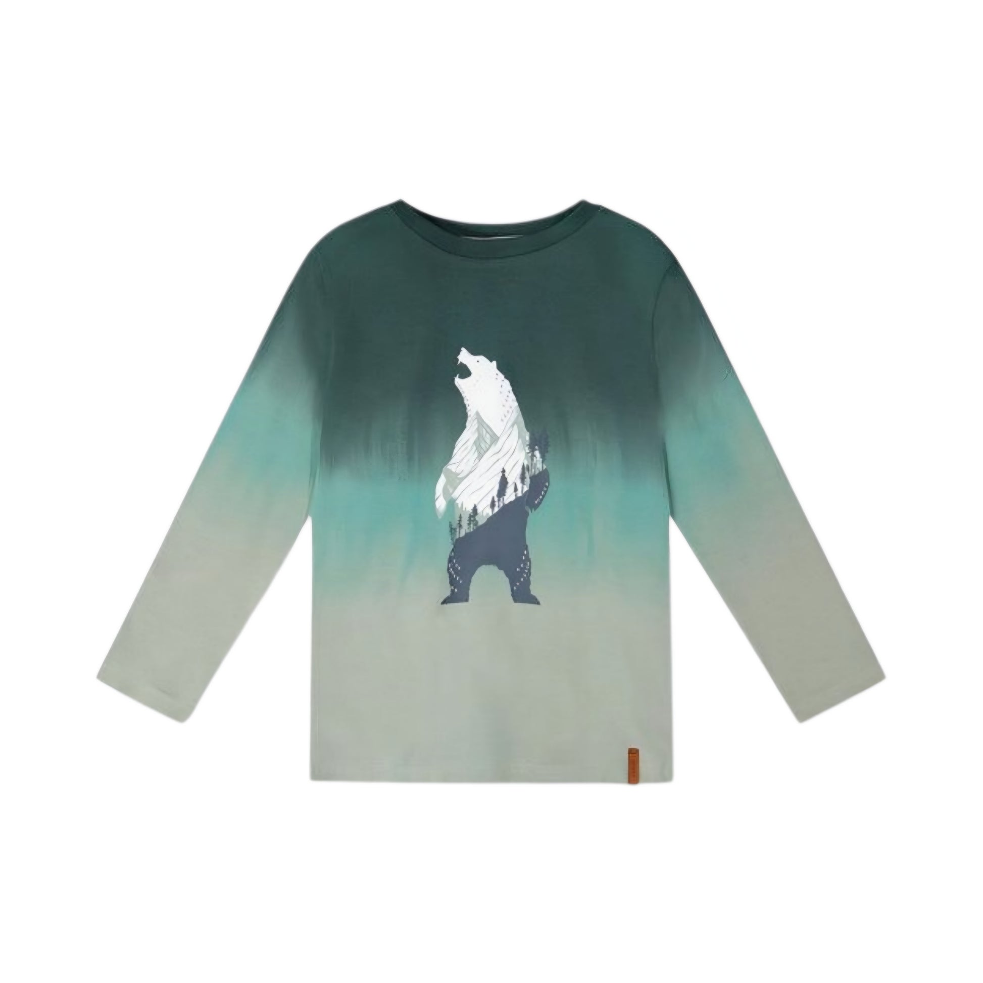 Made from organic cotton, with a soft feel and relaxed fit, this long sleeve top features contrast raglan sleeves and a ringer crew neckline and a bear graphic on the chest that glow in the dark!