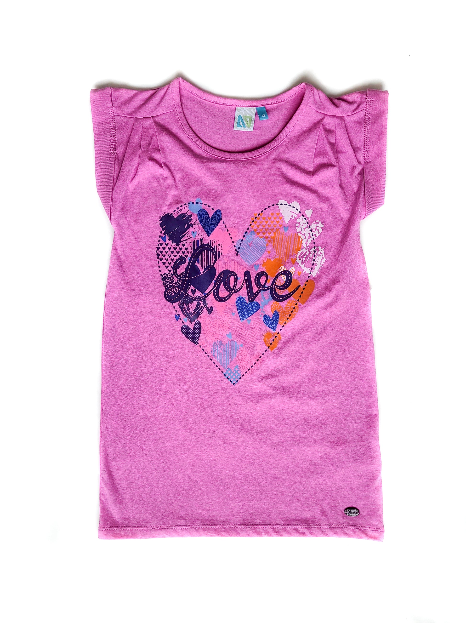 This graphic print top features rolled up cap sleeves and gathered details at the shoulders.