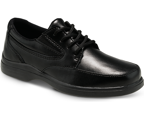 Hush Puppies offer a classic oxford lace up shoe that will meet any dress code. They feature a memory foam insole to keep your big kid cool and comfortable all day and a microsuede fabric sockliner for comfort and breathability.