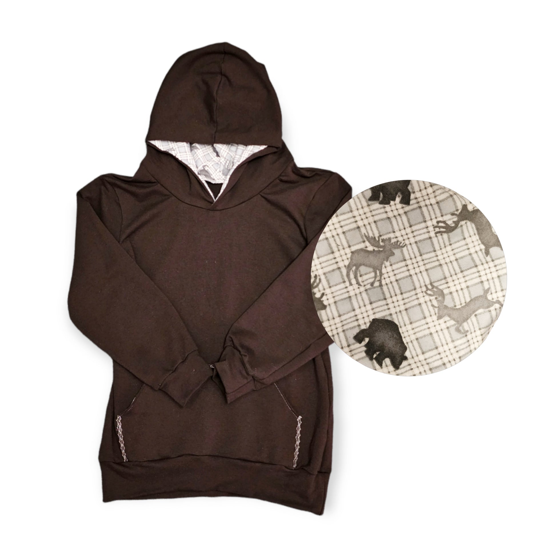 Handmade with love right here in our store, this lined hoodie features a Joey pocket and a cozy, lined hood, making this a great addition to your child's fall wardrobe.
