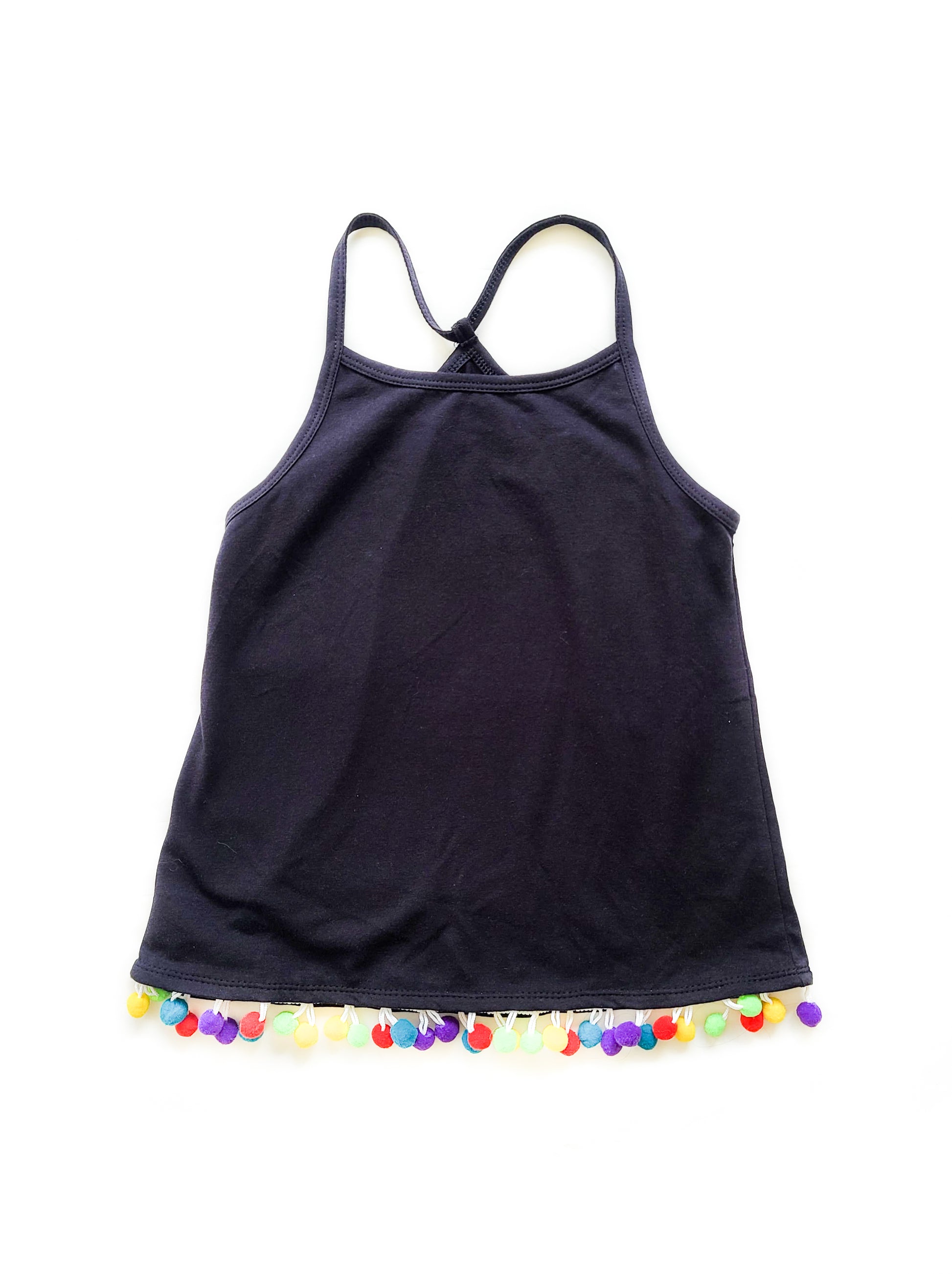 This simple blank tank top features a fun multi-colour hemline detail. The classic fit will make for a staple in any wardrobe and its neutral colour will allow for easy pairing with any outfit.