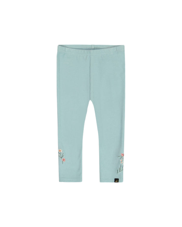 With an easy pull-on fit, these leggings feature a stretch elastic waistband, a vertical ribbed texture, and little flower graphics on each leg.