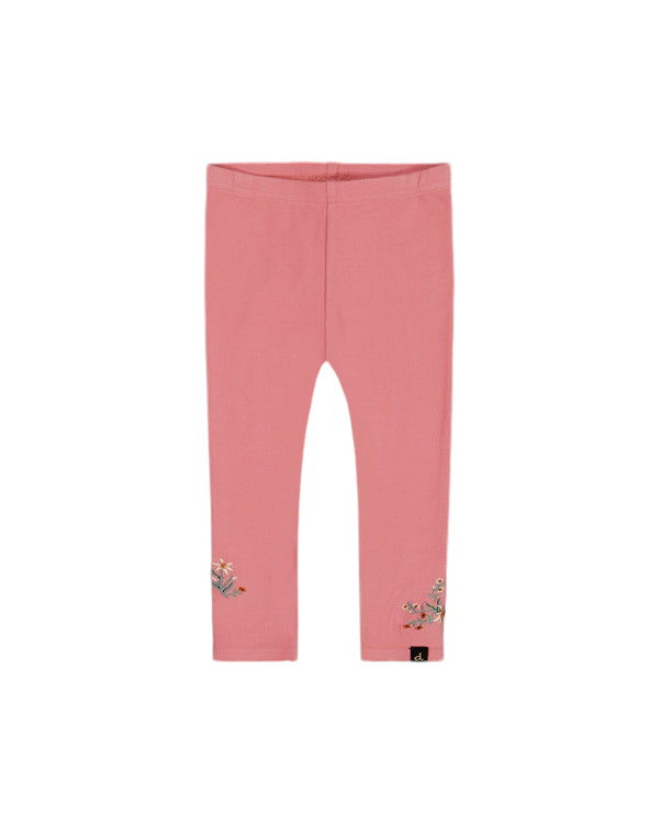 With an easy pull-on fit, these leggings feature a stretch elastic waistband, a vertical ribbed texture, and little flower graphics on each leg.