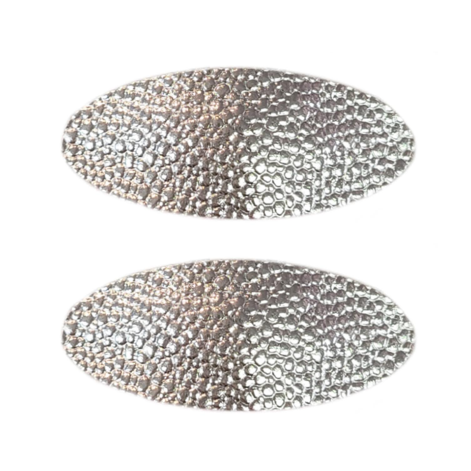 Vinyl and felt metallic hair clips, handmade in the Cowichan Valley.
